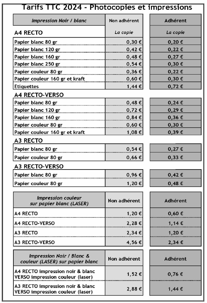 APhotocopies - Travaux de secrétariat - Location de matérielsLes news locales - Point accès Internet