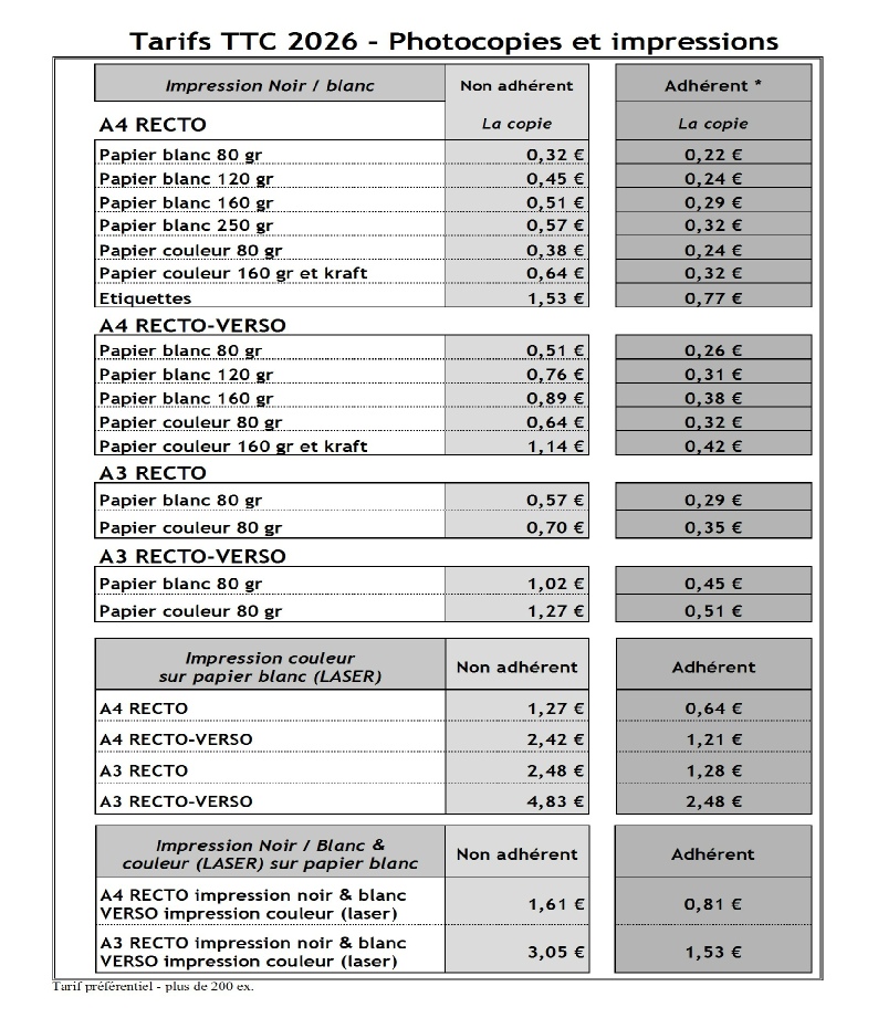 Accueil Prestations Location de matériels Bureautique L'association - Adhésion